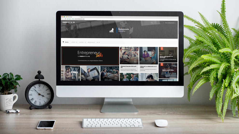 Momentum empezó y sigue siendo al día de hoy, como una plataforma de contenidos para pequeñas y medianas empresas, en donde los usuarios pueden disfrutar de videos, artículos y charlas para poder solucionar problemas de diferente índole en situaciones laborales. Si bien la escencia sigue siendo la misma, la web sufrió de muchos cambios.