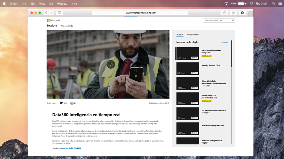 Otra plataforma de contenidos, pero esta vez orientada a empresas que buscan maneras de mejorar su negocio. Microsoft Sessions juega un rol fundamental en brindarle recursos confiables y de calidad y de esta manera ayudar a empoderar a cada vez más y más personas.